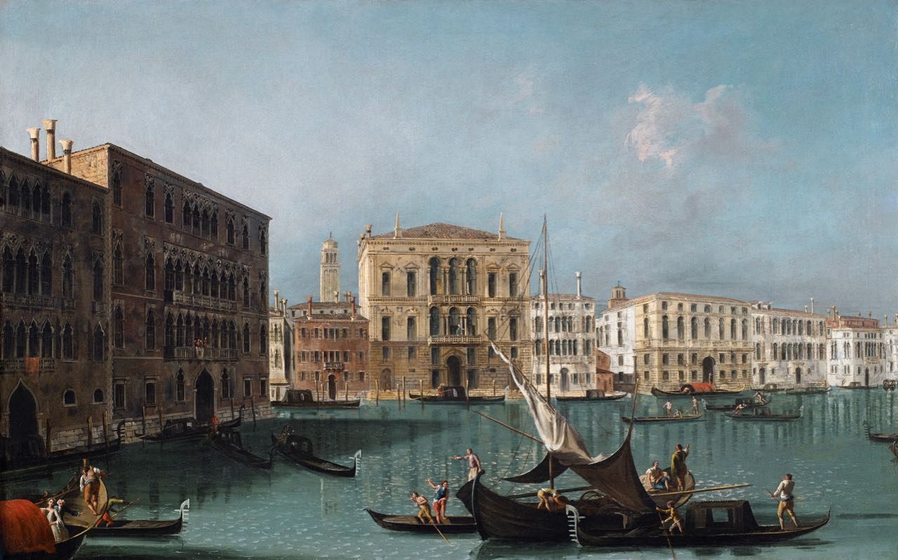 Si riconoscono: il Palazzo Giustinian, sulla sinistra, accanto il sontuoso Palazzo Foscari. Il centro della composizione è dominato da Palazzo Balbi. Sulla destra si riconoscono Palazzo Civran, Palazzo Dandolo e Palazzo Dolfin.