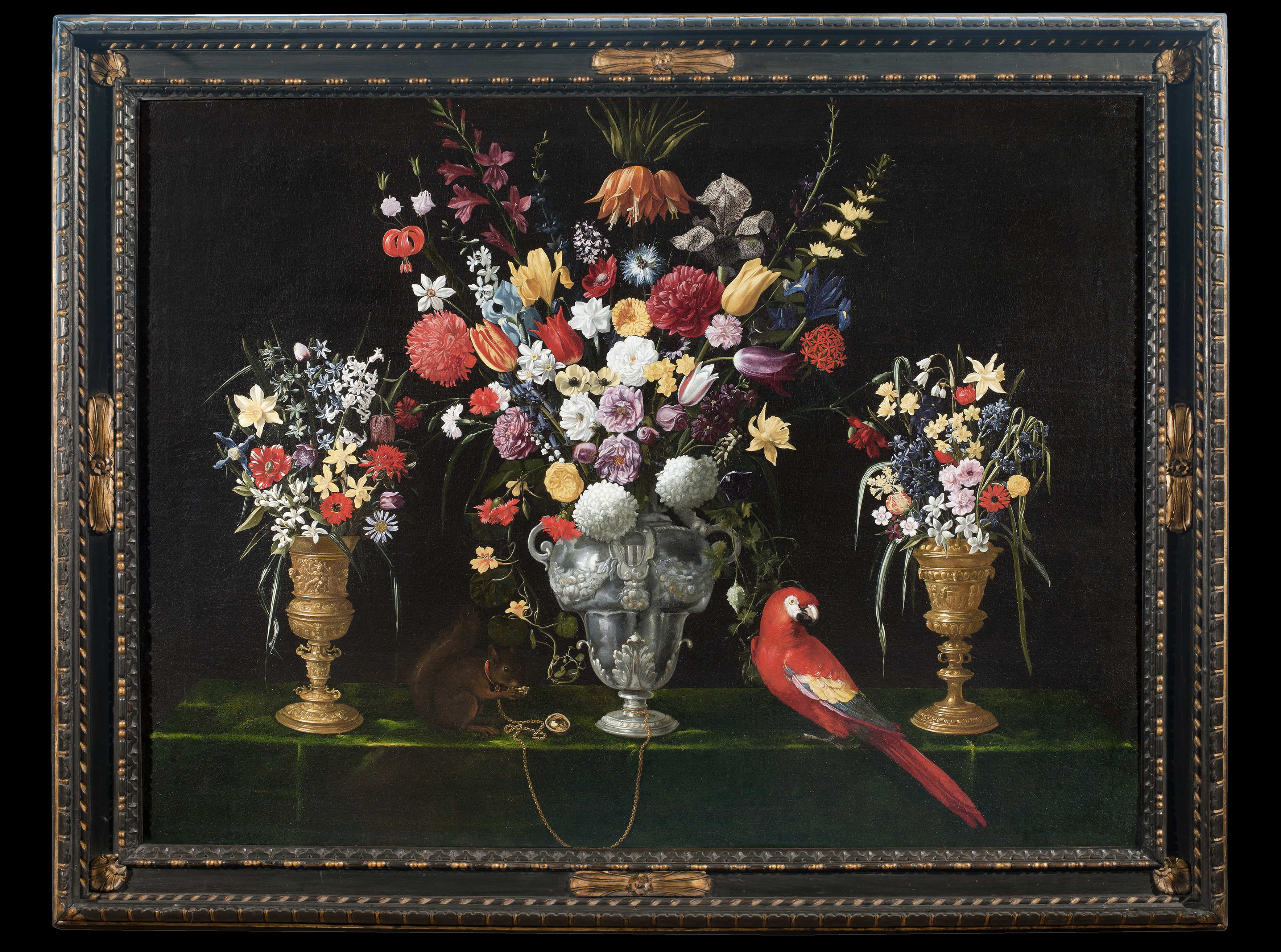 The exhibition Wonderful! A European Baroque flowery masterpiece, set up in the new room of the temporary exhibitions inside the Casa Museo, presents the results of the historical-artistic, stylistic and botanical investigations conducted on the large canvas with Still life with three vases of flowers, a squirrel and a parrot on a table (1625-1630 circa), which entered the Zani collection in 2004. Although the work does not have a certain attribution, it was chosen by Zani exclusively for its extraordinary pictorial quality. Admirable in technique and visual impact, the scenic canvas, already attributed in 1999 to Astolfo Petrazzi, was exhibited in 2016 at the Galleria Borghese in Rome as the work of a Caravaggio painter active in the third-fourth decade of the seventeenth century. The work, as mysterious as it is scenic, has been subjected in recent months to a series of scientific investigations, stylistic and botanical research that have led to new results, presented precisely on the occasion of this new exhibition. As many as 63 botanical essences are reproduced in the painting that, for stylistic and compositional affinities with other works, is today traced back to the production of an artist active in Italy, probably Spanish, within the third decade of the 17th century.